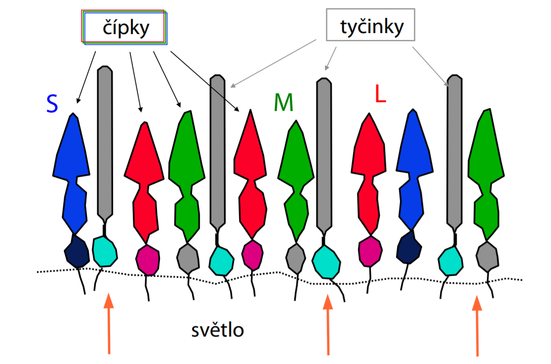 - Různá citlivost na červenou (0,3), zelenou (0,6) a modrou (0,1) barv.