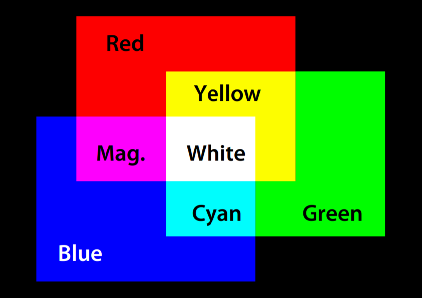 Grassmanovy zákony (1854) - lidské oko vnímá: